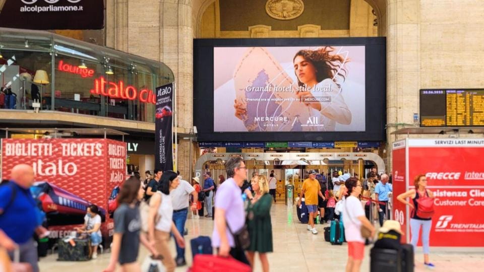 I moderni display LED pubblicitari, distribuiti strategicamente nei 5 livelli della stazione, offrono alle aziende una piattaforma di comunicazione ad alto impatto. Questi pannelli digitali ad alta definizione catturano l'attenzione del pubblico con contenuti visivi dinamici e messaggi incisivi, trasformando i tempi di attesa in opportunità di engagement. La posizione privilegiata di Milano Centrale nel tessuto urbano la rende una vetrina pubblicitaria d'eccezione, dove brand e retailer possono comunicare efficacemente con un flusso costante di potenziali clienti in un contesto di prestigio architettonico.
